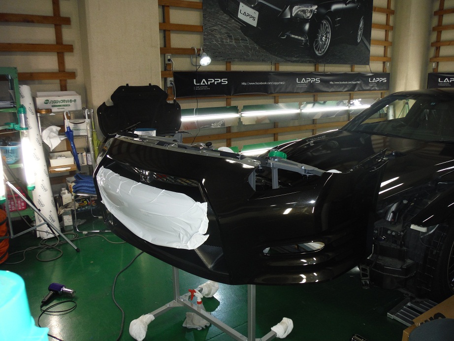 リアスポイラーとフロントバンパーは外して施工です