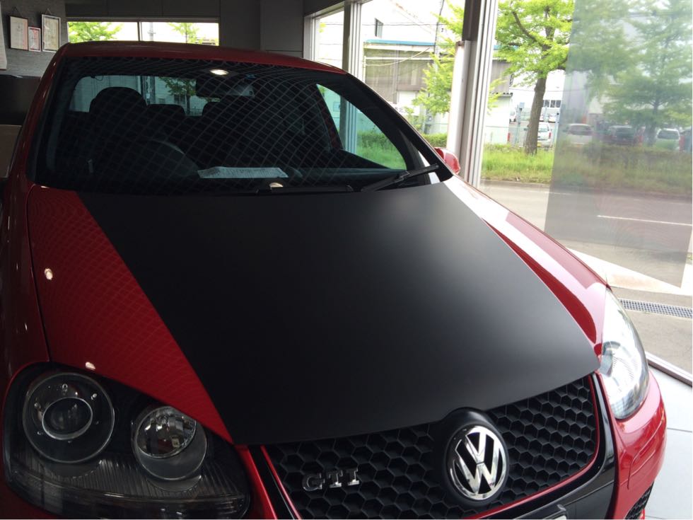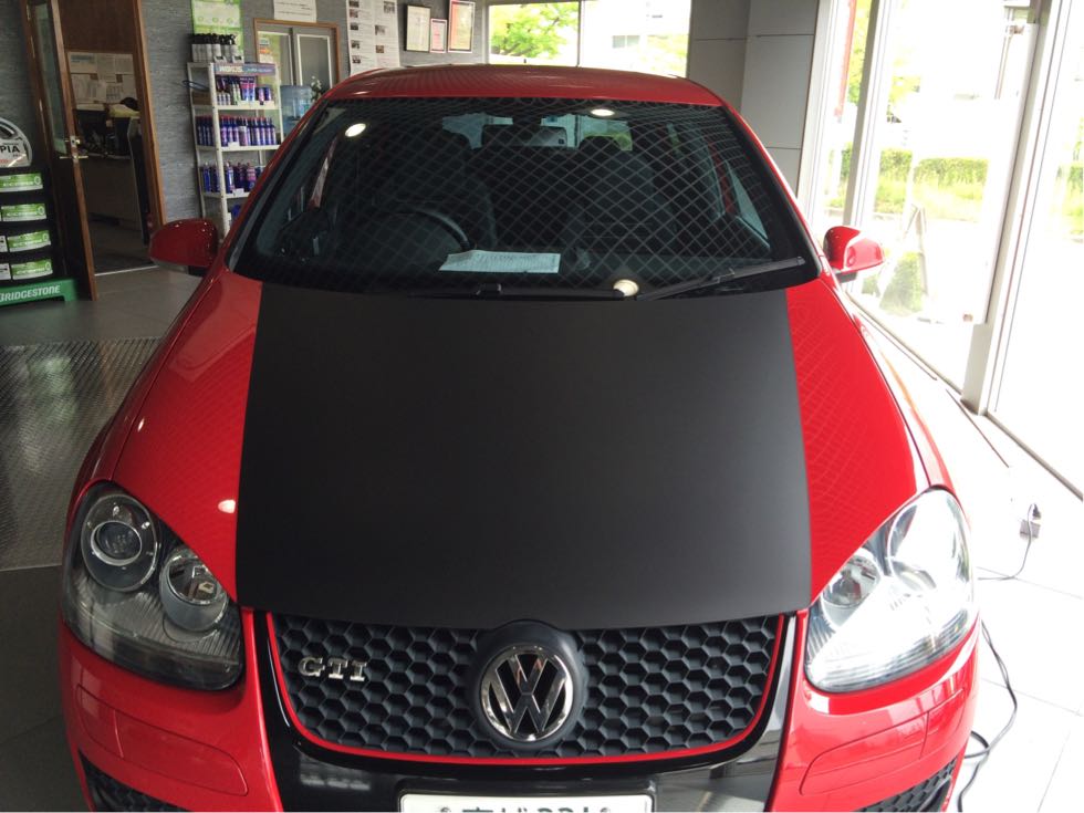 ボンネットラッピングの光景です。