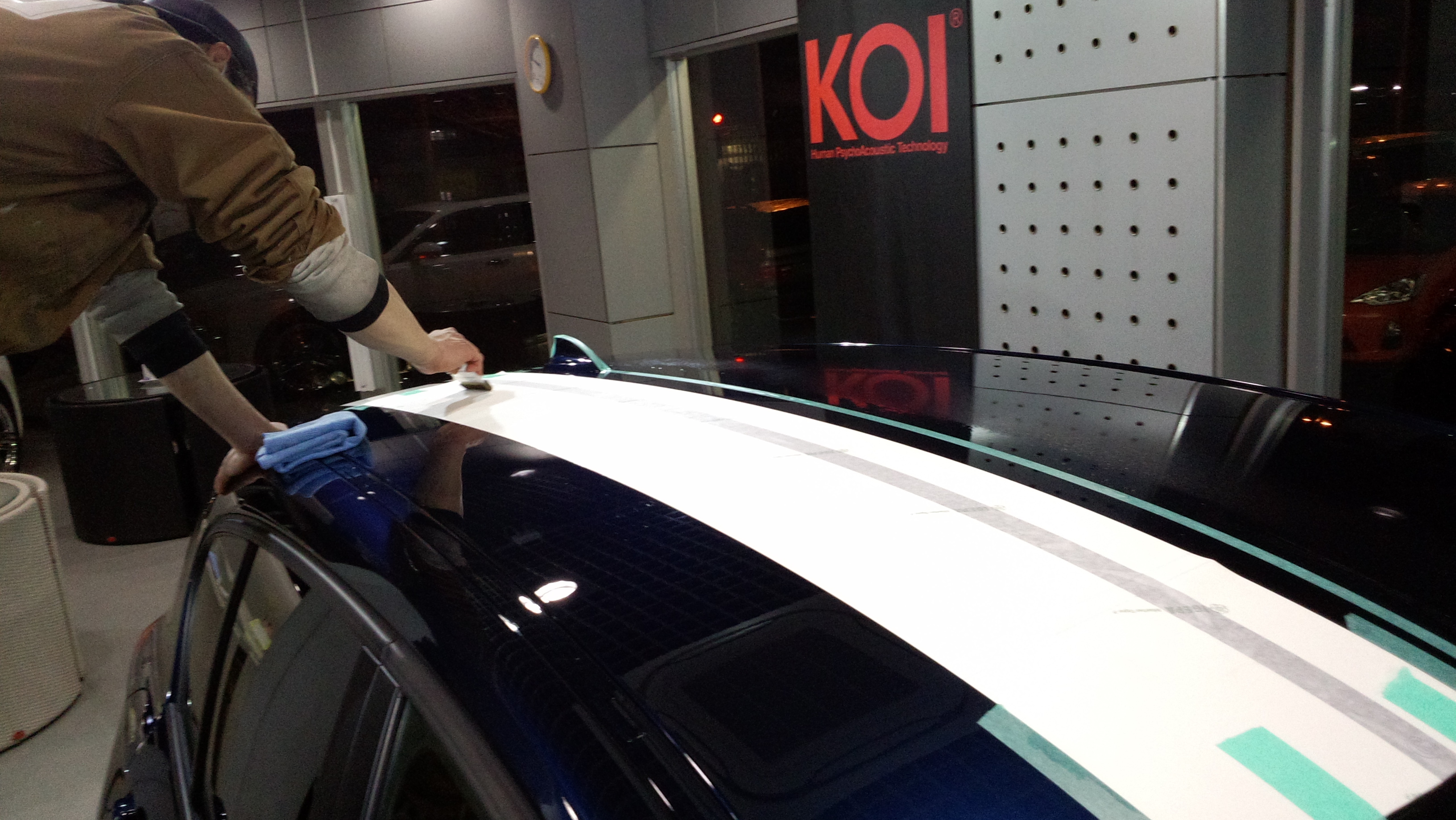 この間、ディティーリングの後藤くんとBMWにレーシングストライプをはりました!!