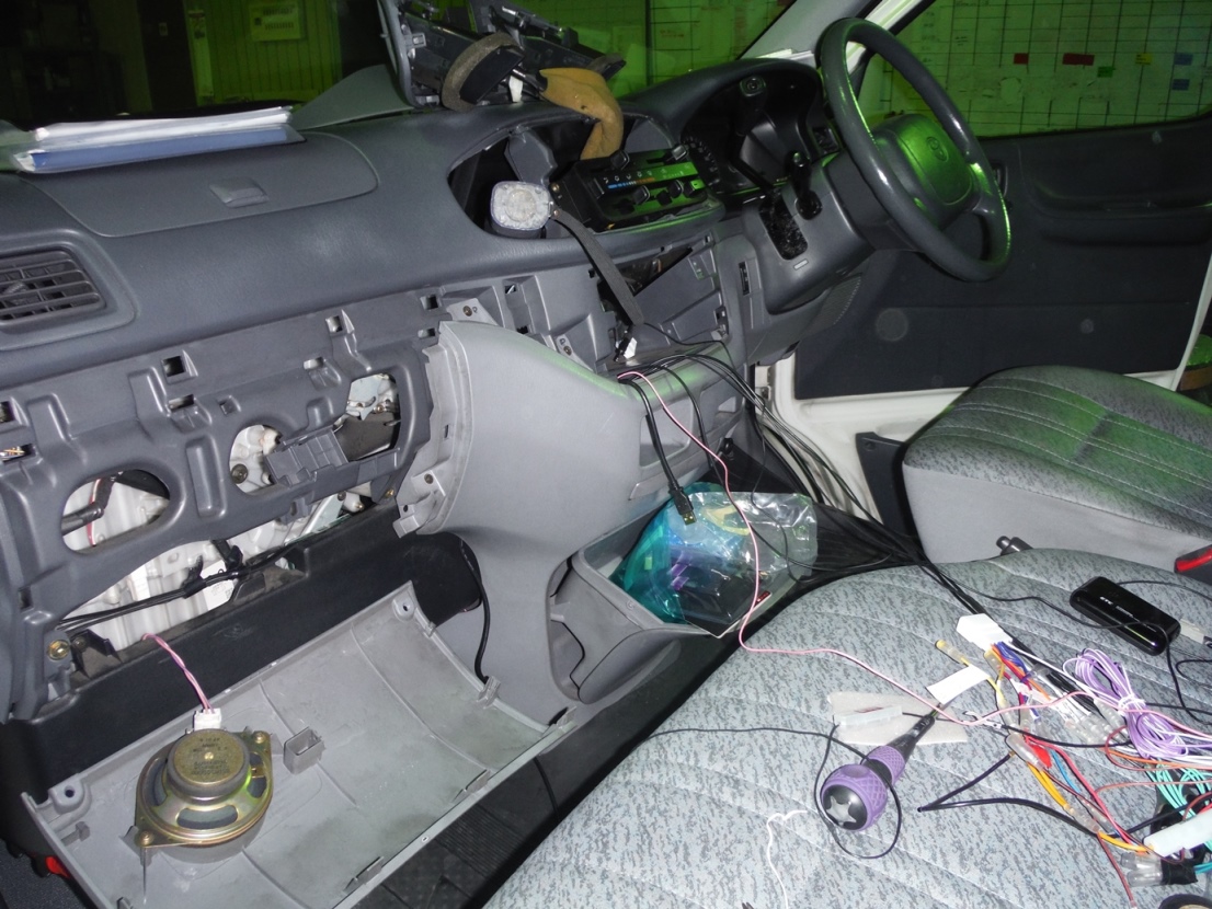 後は車内へ内張り裏を配線をつたわせていきます・・・スルスルと・・・
