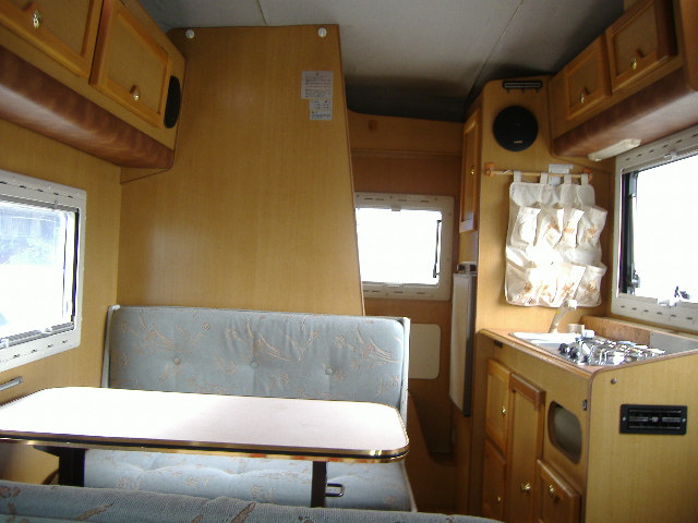 シャワールームはありませんが、ベッド・キッチン・テーブル・ソファー付きの本格的なキャンピングカーでした。