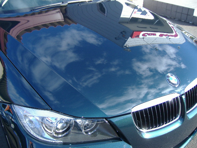 ボンネットに雲と当店の看板がキレイに移り込んでいます。