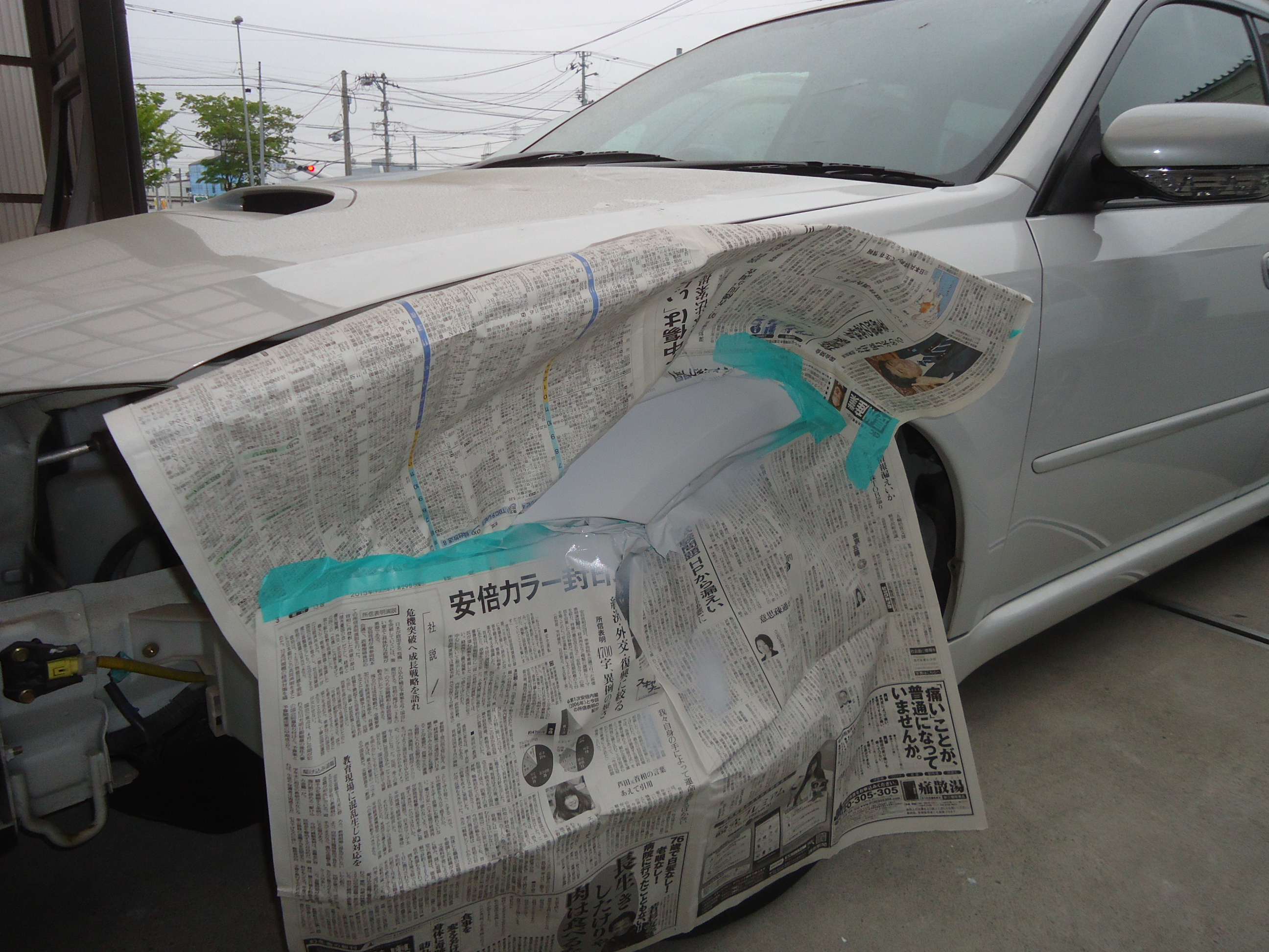 補修箇所は、Fバンパーと左Fフェンダーです。画像だと見えにくいんですが、