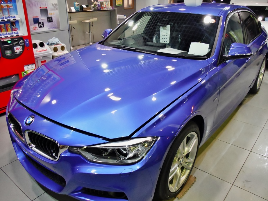 これはBMWのフロントバンパーとフードパネルの塗装画像です。