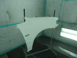 リアクォーター、フロントフェンダー、フード、フロントフェイスなどなど、さまざまな色で、パネルや、パーツを塗装しています。