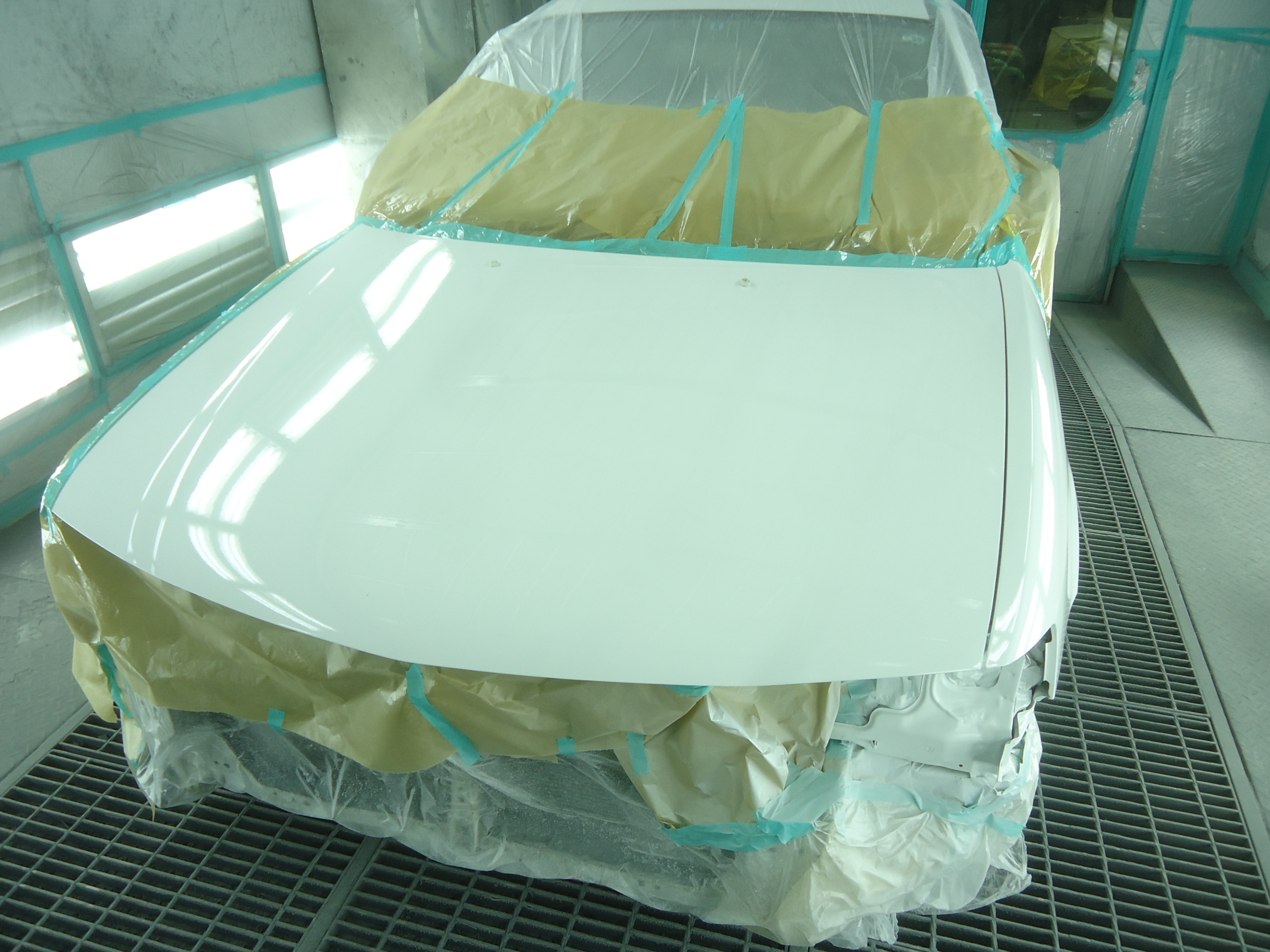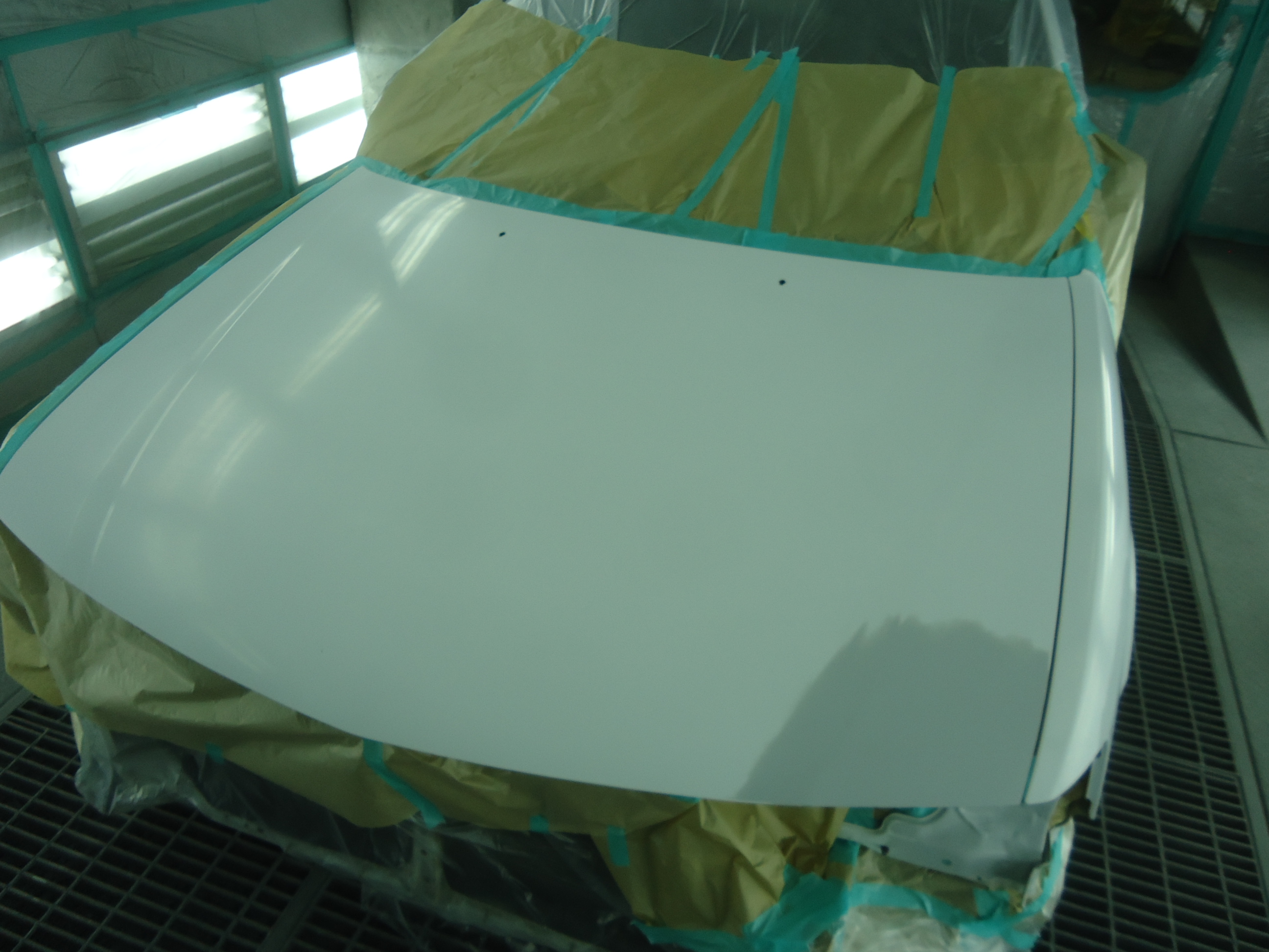 ボンネット、左フロントフェンダーを鈑金・塗装した画像です。