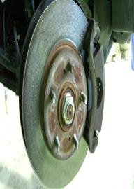 これが問題の車のブレーキです。ブレーキパットとローターが焼けてました。